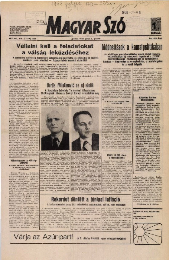 Magyar Szó, 45. évf. 1988. július 1. 179. sz. 1–24. oldal