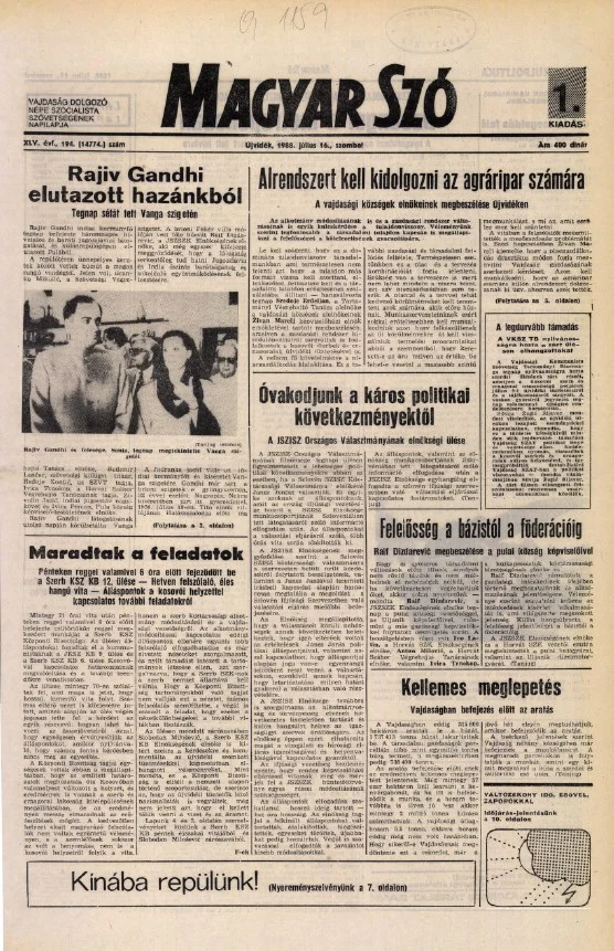 Magyar Szó, 45. évf. 1988. július 16. 194. sz. 1–20. oldal