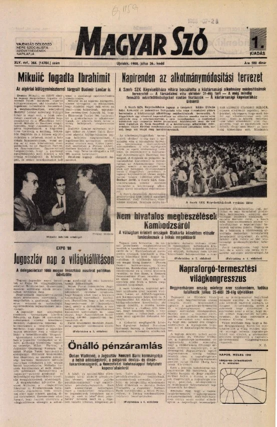 Magyar Szó, 45. évf. 1988. július 26. 204. sz. 1–16. oldal