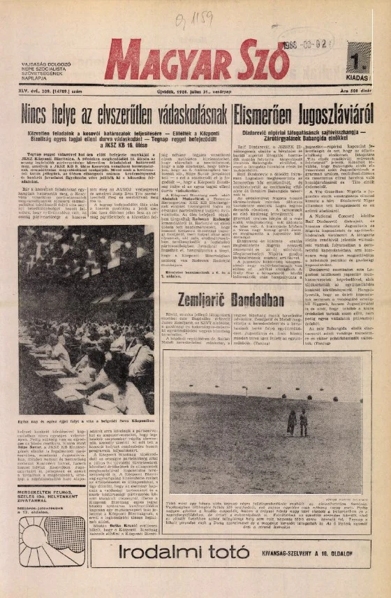 Magyar Szó, 45. évf. 1988. július 31. 209. sz. 1–32. oldal