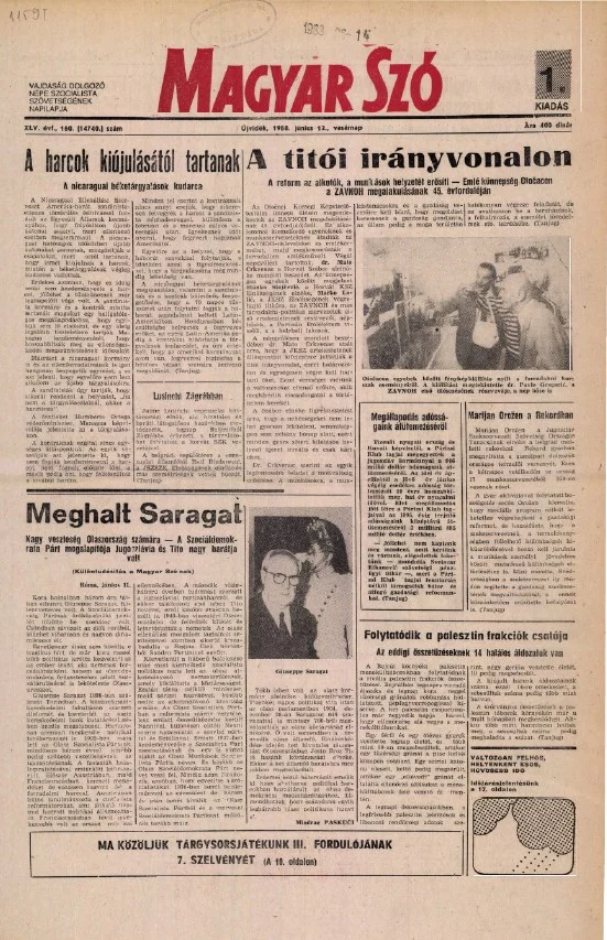 Magyar Szó, 45. évf. 1988. június 12. 160. sz. 1–32. oldal