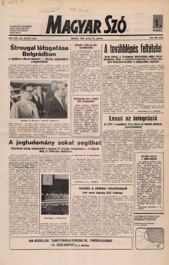 Magyar Szó, 45. évf. 1988. június 17. 165. sz. 1–28. oldal