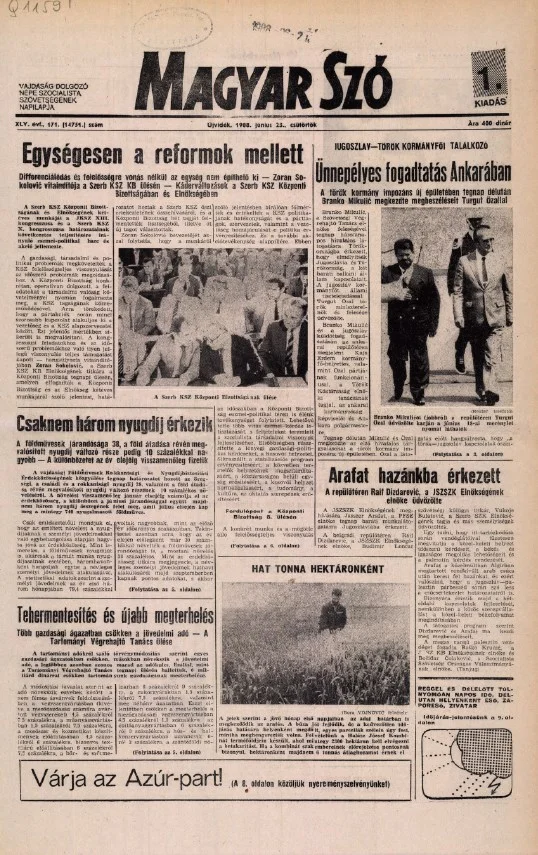 Magyar Szó, 45. évf. 1988. június 23. 171. sz. 1–16. oldal