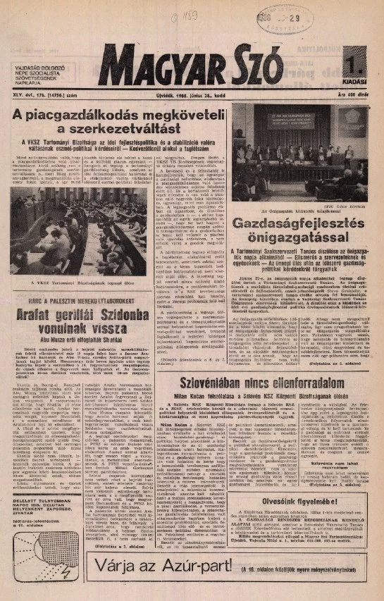 Magyar Szó, 45. évf. 1988. június 28. 176. sz. 1–20. oldal