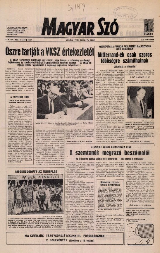 Magyar Szó, 45. évf. 1988. június 7. 155. sz. 1–20. oldal