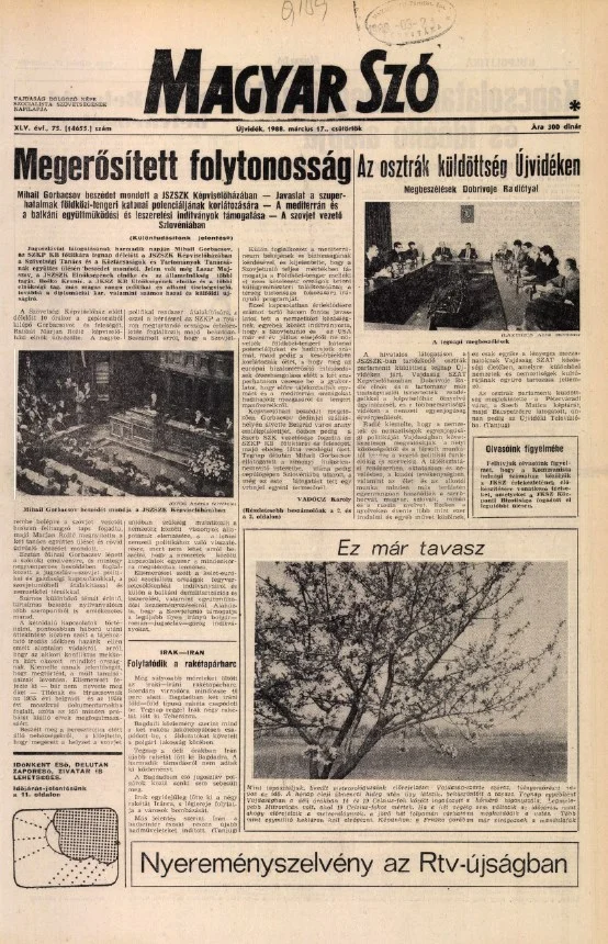 Magyar Szó, 45. évf. 1988. március 17. 75. sz. 1–16. oldal