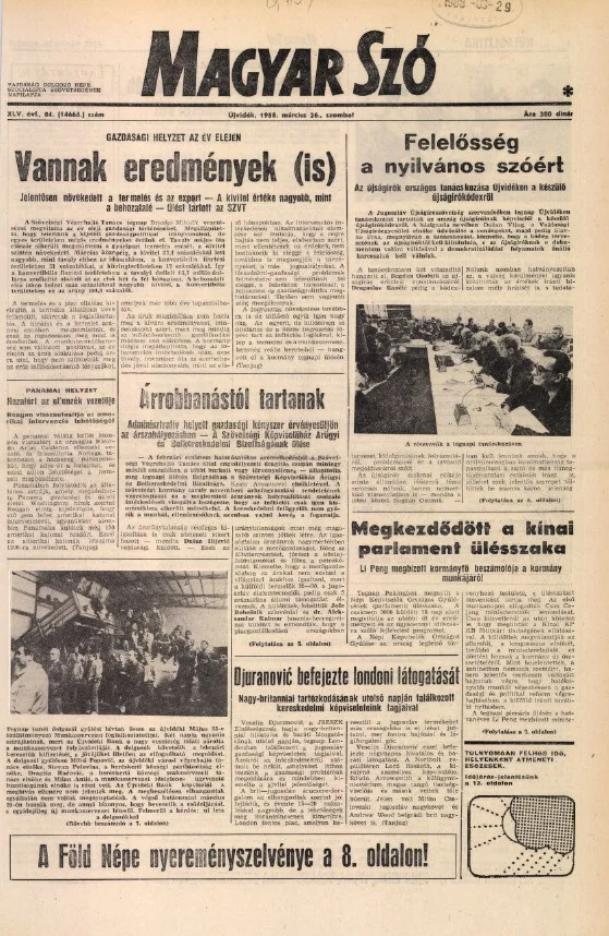 Magyar Szó, 45. évf. 1988. március 26. 84. sz. 1–24. oldal