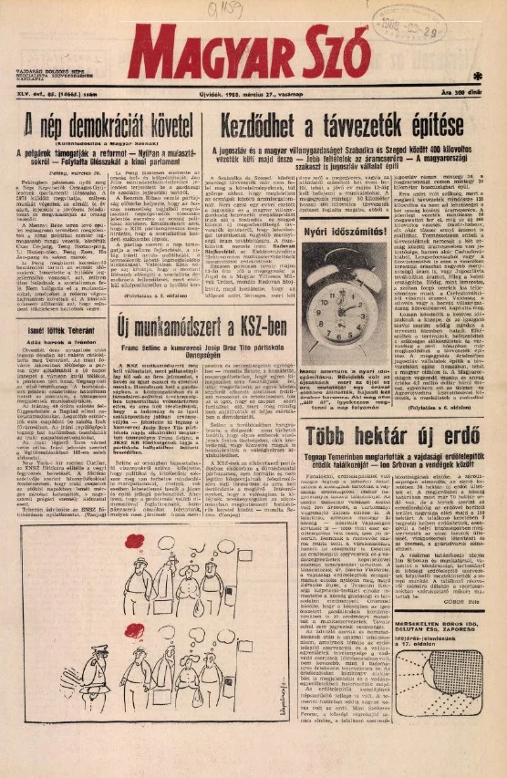 Magyar Szó, 45. évf. 1988. március 27. 85. sz. 1–32. oldal