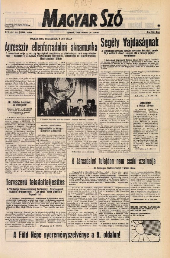 Magyar Szó, 45. évf. 1988. március 30. 88. sz. 1–20. oldal