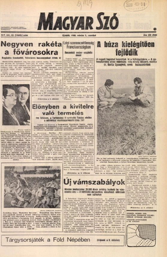 Magyar Szó, 45. évf. 1988. március 5. 63. sz. 1–24. oldal
