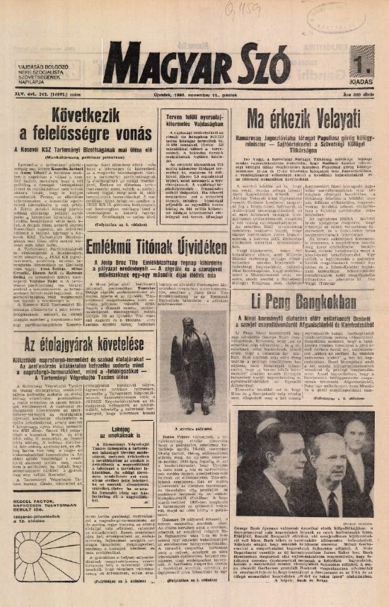 Magyar Szó, 45. évf. 1988. november 11. 312. sz.