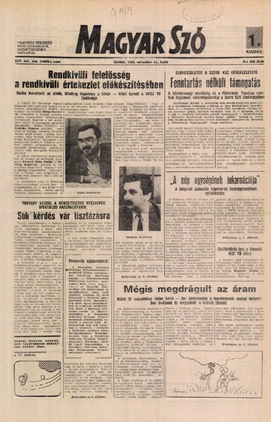 Magyar Szó, 45. évf. 1988. november 15. 316. sz.