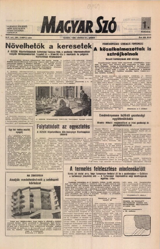Magyar Szó, 45. évf. 1988. október 21. 291. sz.