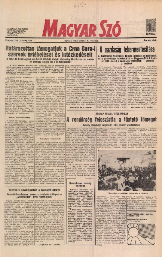 Magyar Szó, 45. évf. 1988. október 9. 279. sz.