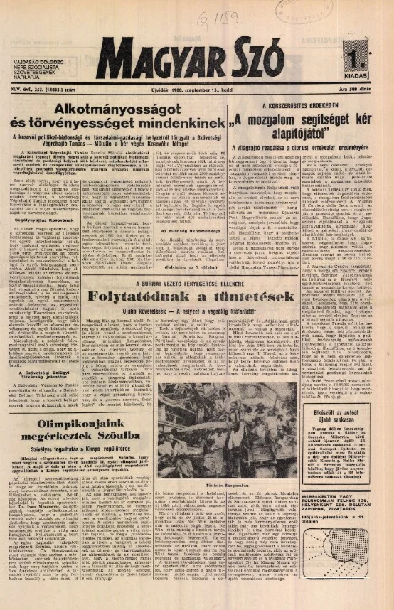 Magyar Szó, 45. évf. 1988. szeptember 13. 253. sz.