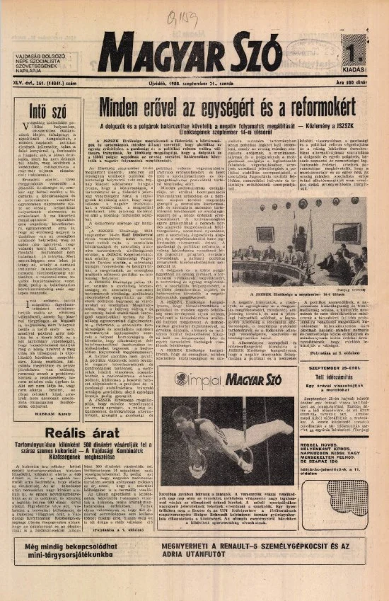 Magyar Szó, 45. évf. 1988. szeptember 21. 261. sz.