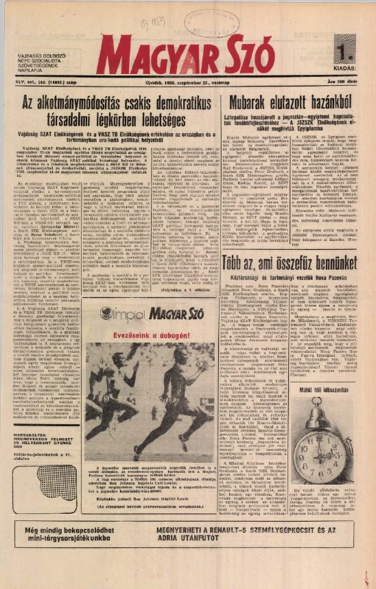 Magyar Szó, 45. évf. 1988. szeptember 25. 265. sz.