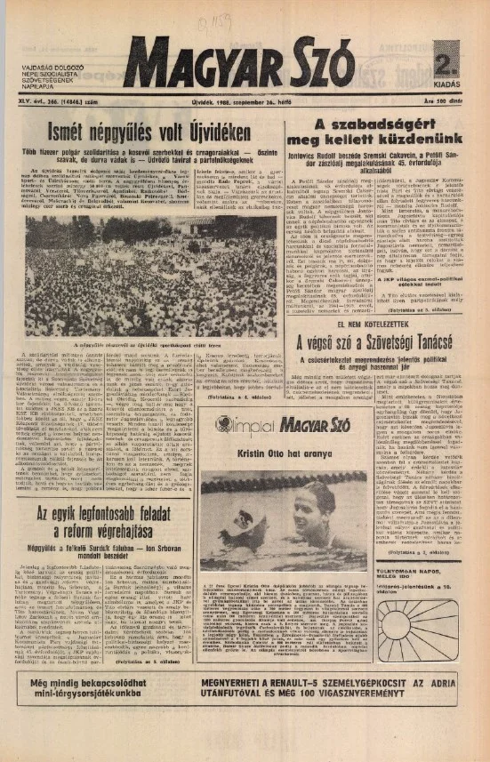 Magyar Szó, 45. évf. 1988. szeptember 26. 266. sz.