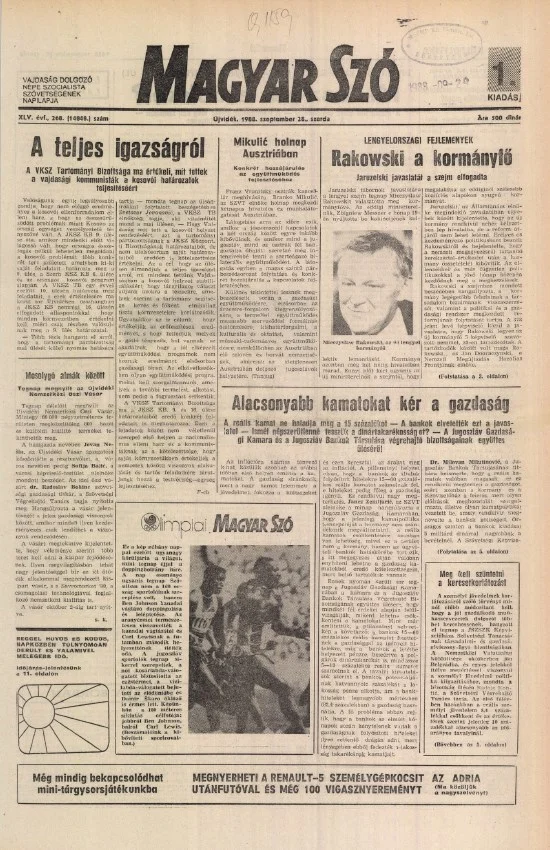 Magyar Szó, 45. évf. 1988. szeptember 28. 268. sz.
