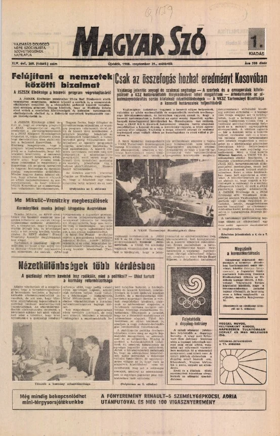 Magyar Szó, 45. évf. 1988. szeptember 29. 269. sz.