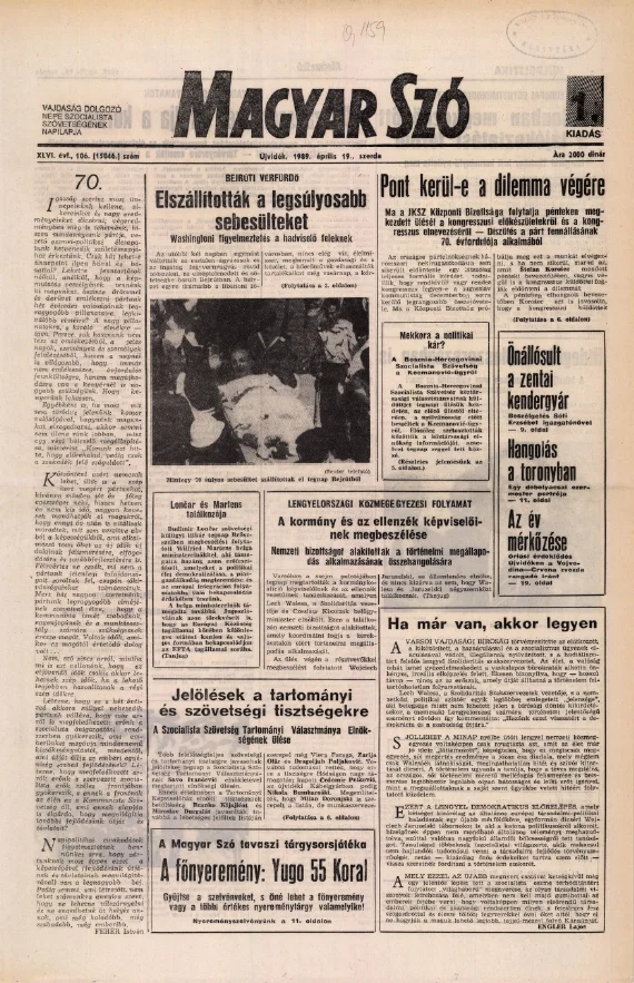 Magyar Szó, 46. évf. 1989. április 19. 106. sz. 1–20. oldal