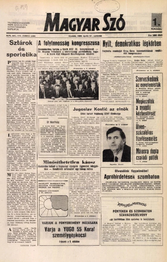 Magyar Szó, 46. évf. 1989. április 27. 114. sz. 1–16. oldal