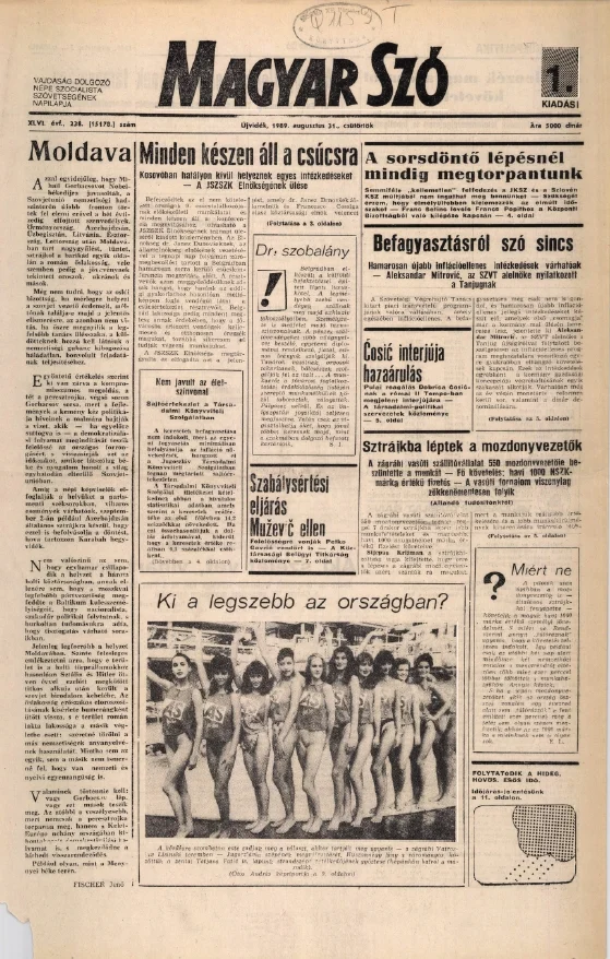 Magyar Szó, 46. évf. 1989. augusztus 31. 238. sz. 1–16. oldal
