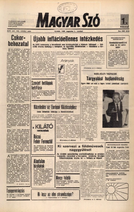 Magyar Szó, 46. évf. 1989. augusztus 5. 212. sz. 1–28. oldal