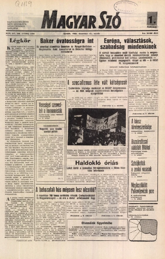 Magyar Szó, 46. évf. 1989. december 13. 340. sz.
