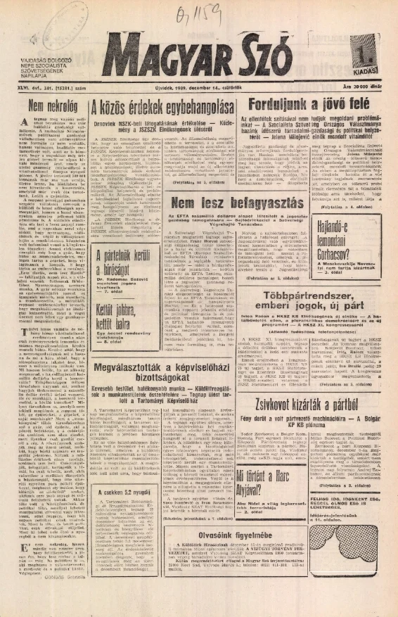 Magyar Szó, 46. évf. 1989. december 14. 341. sz. 1–16. oldal