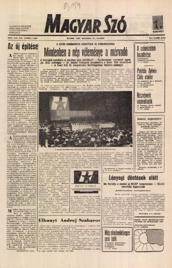 Magyar Szó, 46. évf. 1989. december 16. 343. sz. 1–28. oldal