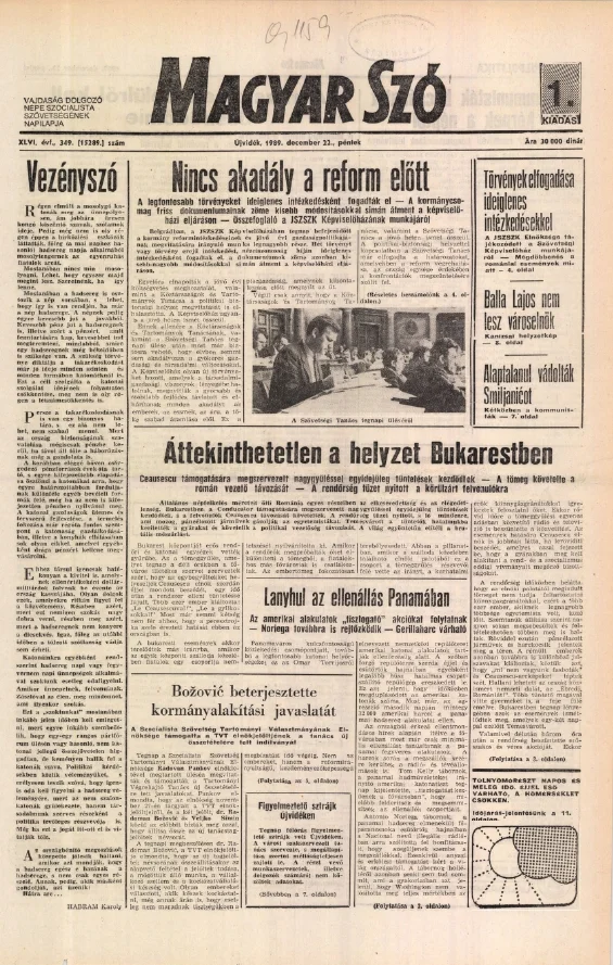Magyar Szó, 46. évf. 1989. december 22. 349. sz. 1–20. oldal