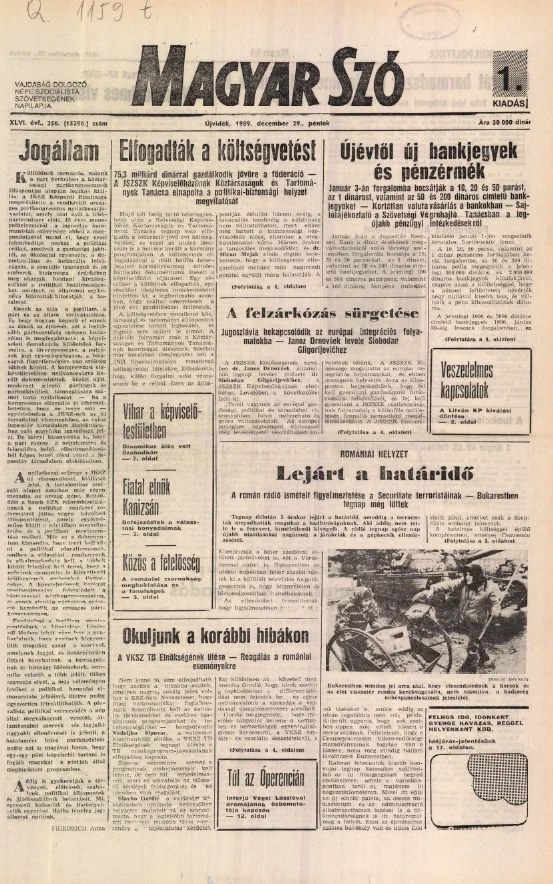 Magyar Szó, 46. évf. 1989. december 29. 356. sz. 1–20. oldal