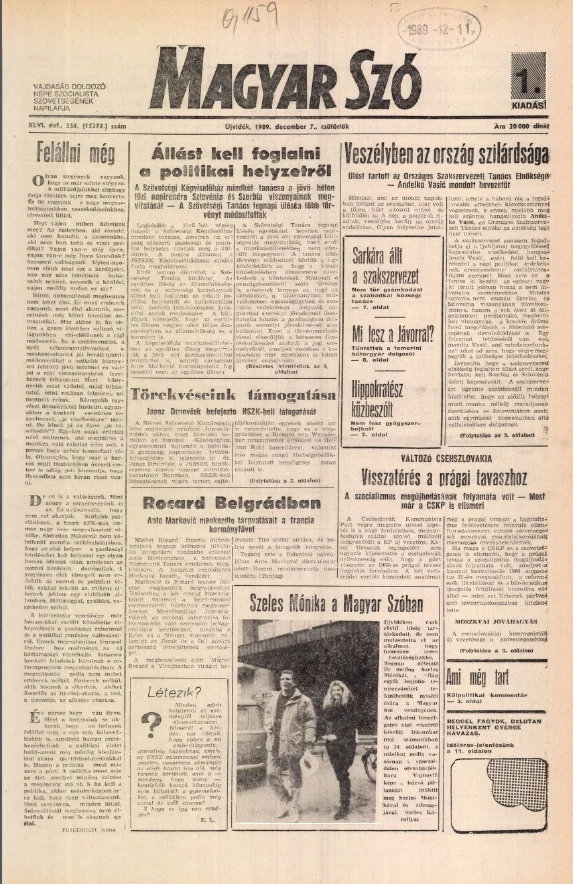 Magyar Szó, 46. évf. 1989. december 7. 334. sz. 1–16. oldal