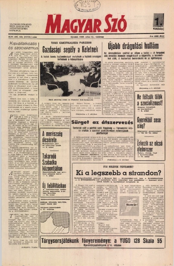 Magyar Szó, 46. évf. 1989. július 16. 192. sz. 1–32. oldal