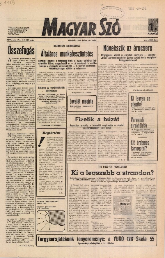 Magyar Szó, 46. évf. 1989. július 18. 194. sz. 1–16. oldal