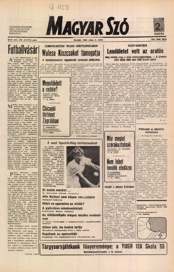Magyar Szó, 46. évf. 1989. július 3. 179. sz. 1–20. oldal