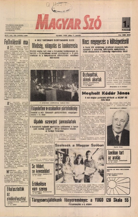 Magyar Szó, 46. évf. 1989. július 7. 183. sz. 1–20. oldal