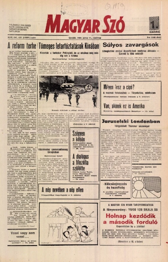 Magyar Szó, 46. évf. 1989. június 11. 157. sz. 1–32. oldal