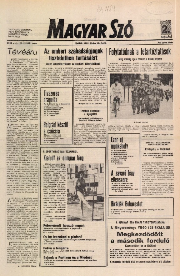Magyar Szó, 46. évf. 1989. június 12. 158. sz. 1–20. oldal