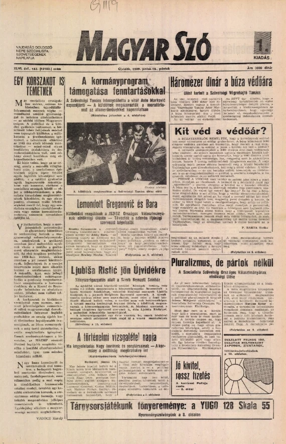 Magyar Szó, 46. évf. 1989. június 16. 162. sz. 1–20. oldal