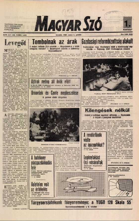 Magyar Szó, 46. évf. 1989. június 2. 148. sz. 1–20. oldal