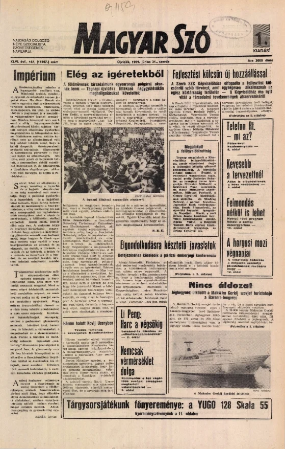 Magyar Szó, 46. évf. 1989. június 21. 167. sz. 1–20. oldal