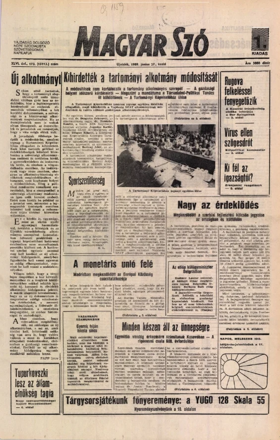 Magyar Szó, 46. évf. 1989. június 27. 173. sz. 1–20. oldal