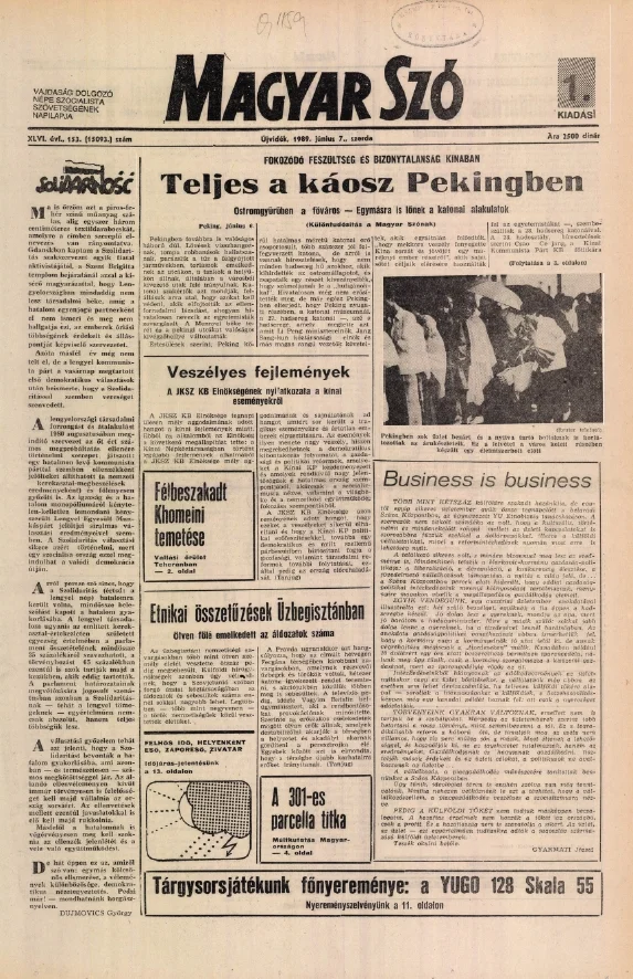 Magyar Szó, 46. évf. 1989. június 7. 153. sz. 1–20. oldal