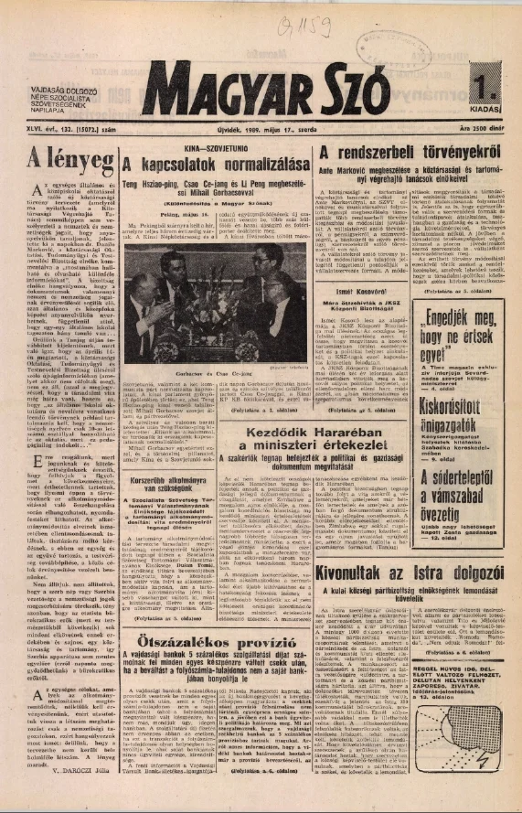 Magyar Szó, 46. évf. 1989. május 17. 132. sz. 1–20. oldal