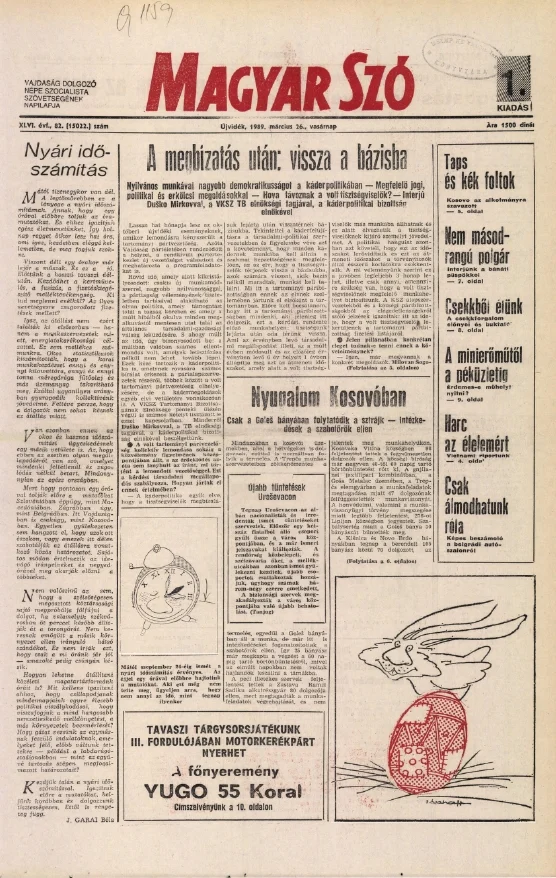 Magyar Szó, 46. évf. 1989. március 26. 82. sz. 1–32. oldal