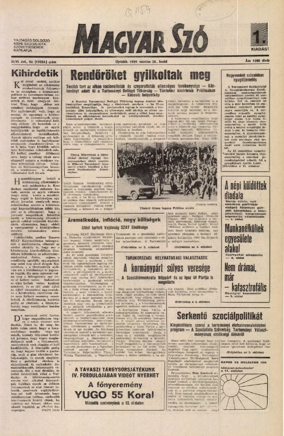 Magyar Szó, 46. évf. 1989. március 28. 84. sz. 1–20. oldal