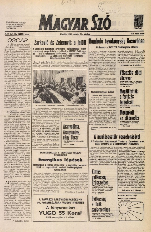 Magyar Szó, 46. évf. 1989. március 31. 87. sz. 1–24. oldal