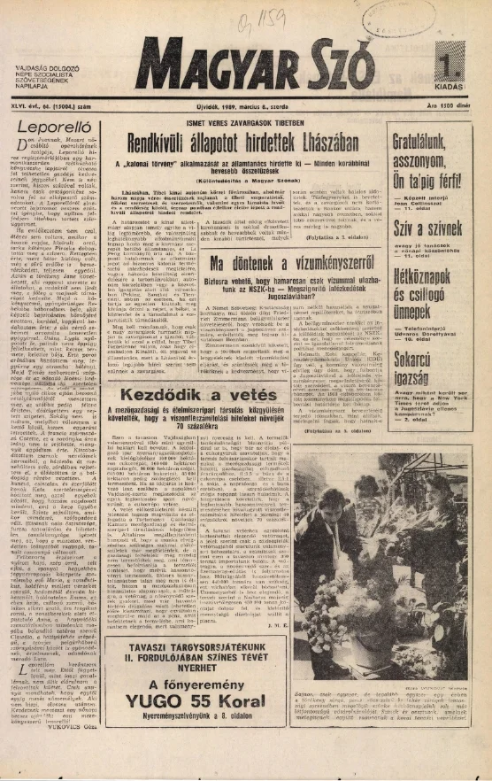 Magyar Szó, 46. évf. 1989. március 8. 64. sz. 1–20. oldal